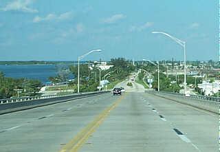 At about fifteen miles you come to the Jensen Beach "round-a-bout". (If you decide to head West here you shorten the route by about ten miles...) But keep going South. Just before the first bridge, (at the conv. store) you'll see the first traffic light in 21 miles. Head over the two new Bridges and turn right (North) on Indian River Drive.