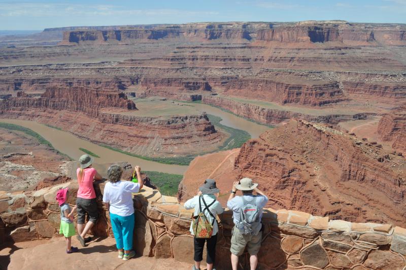 So while you may want to walk along some of the 8 miles of hiking trail, or utilize some of the bicycle trails, you can just walk along the main view point and see a spectacular view. I mean spectacular! You will be amazed of seeing the meandering Colorado River 2,000' below. You can see a panorama of layers of sedimentary rock displaying their vivid colors as they lay one on top of another.